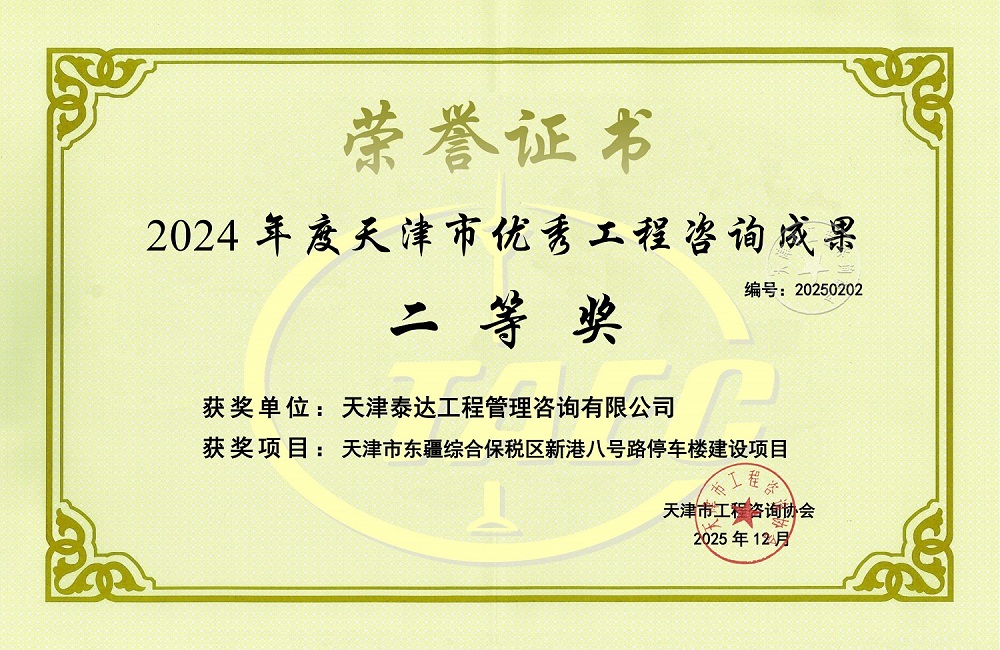 • 天津市優(yōu)秀工程咨詢成果二等獎